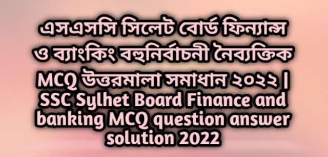 এসএসসি সিলেট বোর্ড ফিন্যান্স ও ব্যাংকিং বহুনির্বাচনী নৈব্যক্তিক MCQ উত্তরমালা সমাধান ২০২৬ | SSC Sylhet Board Finance and banking MCQ question answer solution 2026