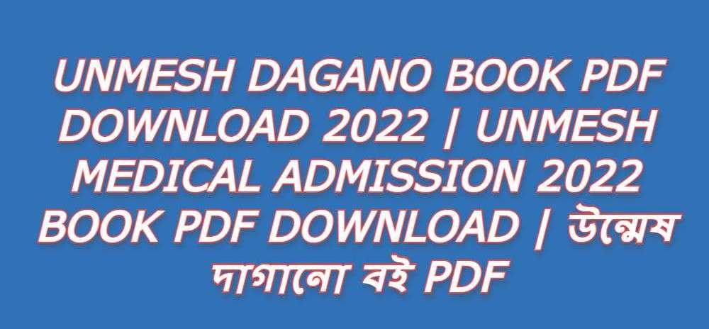 Unmesh Dagano Book Pdf Download 2026 | Unmesh Medical Admission 2026 Book Pdf Download | উন্মেষ দাগানো বই PDF